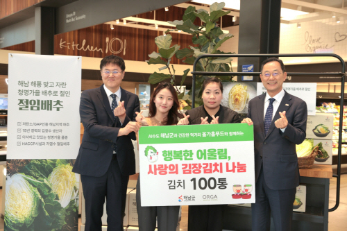 이와함께 해남군은 친환경·유기농 전문 유통기업인 올가홀푸드와 업무협약도 체결했다. 서울 송파구 올가홀푸드 방이점에서 열린 협약식은 명현관 군수와 권순욱 올가홀푸드 대표, 해남 절임배추 생산농가 등이 참석했다.