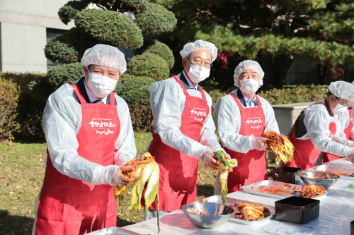 18일 해남군에 따르면 최근 경기도 안양시청에서 사랑의 김장김치 나눔행사를 갖고, 김장담기 행사와 함께 청정 해남배추로 담근 명품 김장김치를 경기도 안양시에 전달했다.