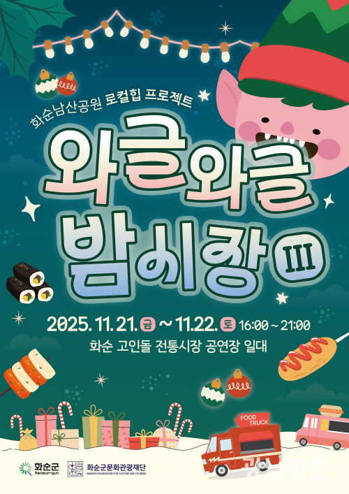 19일 화순군에 따르면 화순군문화관광재단은 21일부터 23일까지 화순읍 남산공원과 고인돌 전통시장 일대에서 ‘2025 미리미리 크리스마스 vol.2’ 축제를 개최한다.
