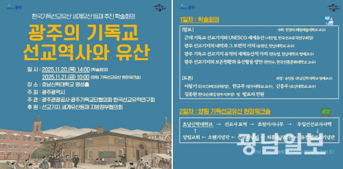 광주시는 20~21일 호남신학대학교 일원에서 ‘한국기독선교유산 세계유산 등재 추진을 위한 학술회의와 워크숍’을 열어 한국 근대 기독교 선교의 역사적 가치를 조명한다.