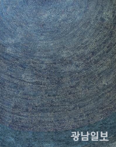‘19-VI-71 #206’은 가로 254㎝, 세로 203㎝ 크기로 화면에 방사선 형태로, 확산하는 점들이 우주로 팽창하는 듯한 무한한 공간감을 표현하고 있다. 하단의 에메랄드빛 띠는 상부보다 한층 깊은 색조로 그려져 신비롭고 초월적인 분위기를 자아낸다는 설명이다.
