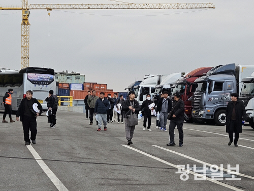 승객들은 호텔 앞에 대기하고 있던 관광버스에 올라 10여 분간 이동해 삼학부두에 도착했다.