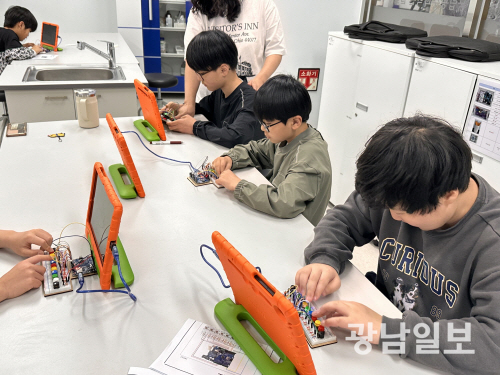 | 아두이노 교육프로그램을 체험하는 학생들. |