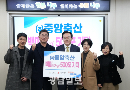 윤병태 나주시장은 “어려운 이웃을 위한 중앙축산의 따뜻한 나눔에 깊이 감사드린다”며 “기탁된 백미는 도움이 필요한 가정과 복지시설에 신속하고 공정하게 전달하겠다”고 화답했다.