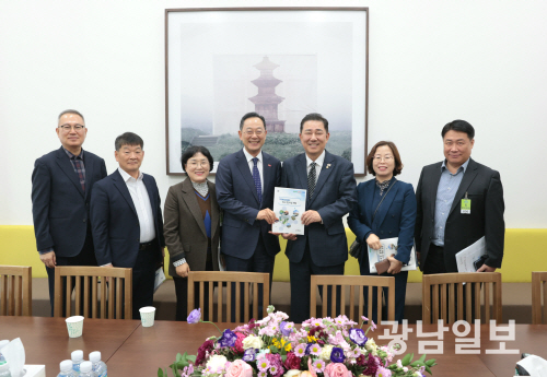 | 명현관 해남군수와 실무담당 공직자들은 최근 국회를 방문해 김병기 더불어민주당 원내대표를 만나 지역 현안사업에 대한 국비 지원을 건의했다. |
