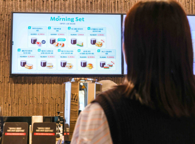 | 스타벅스 매장에서 고객이 ‘모닝 세트’ 라인업을 바라보고 있다. |