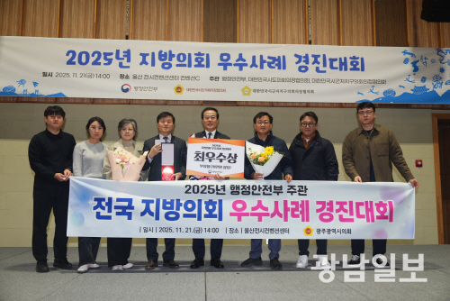 | 광주시의회가 지난 21일 행정안전부가 주관한 ‘2025년 지방의회 우수사례 경진대회’에서 최우수상을 수상했다. |