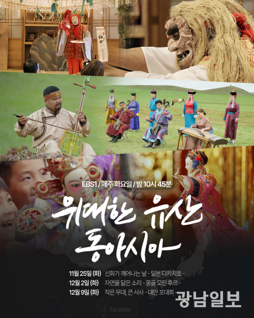 이번 ‘위대한 유산, 동아시아’는 일본, 몽골, 대만 등 동아시아 3개국의 무형문화유산을 2년에 걸친 조사와 현지 촬영을 통해 기록한 3부작 다큐멘터리다. 제작 과정은 각국 정부와 문화기관, 지역 공동체와의 협력 속에서 진행됐다.
