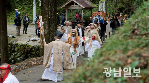 | 규슈 다카치호 지역 마을 사람들이 계승해 온 신에게 바치는 춤 ‘가구라’ 모습. |