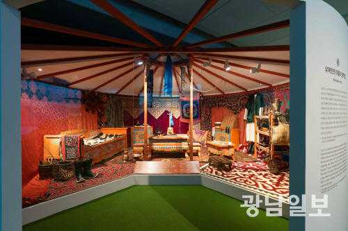 | 국립아시아문화전당(ACC, 전당장 김상욱)이 개관 10주년을 맞아 중앙아시아의 이동과 교류의 역사를 조망하는 아시아문화박물관 상설전시 ‘길 위의 노마드’를 오는 25일 개막, 2027년 11월 24일까지 아시아문화박물관 중앙아시아실에서 선보인다. 사진은 1부 ‘카라반의 숨결이 쉬어간 자리’ 전경. |