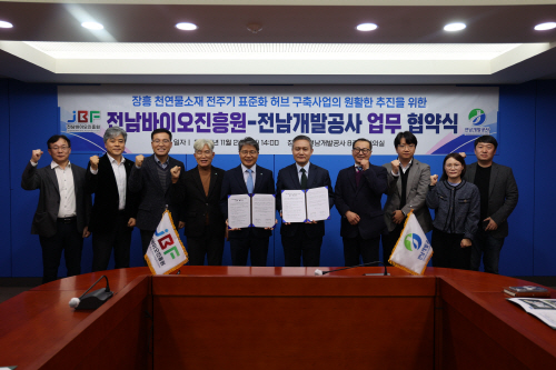 윤효열 전남바이오진흥원장은 “천연물소재 전주기 표준화 허브는 전남 그린바이오 산업 경쟁력을 한 단계 끌어올릴 핵심 인프라”라며 “연구·창업·사업화가 유기적으로 연결된 생태계가 구축되면 전남이 국내 그린바이오 산업의 중심지로 도약하는 데 큰 동력이 될 것”이라고 말했다.