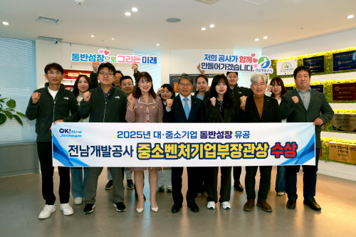 이번 수상은 상생협력 문화를 확산시키고 중소기업과의 협력 생태계 조성에 기여한 기관과 단체를 선정해 수여하는 정부 포상으로, 전남개발공사는 △지역상생펀드 80억원 조성 △JNDC형 우수협력업체 선정 △상생결제 우수 공공기관으로서 지급액 600억원 돌파 △중소기업제품 우선 구매 및 공공구매박람회 지속 확대 △ESG기반 지역사회공헌 실천 등 중소기업의 실질 동반성장 기여 등 성과를 인정 받았다.