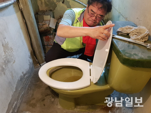 | 취약계층 집을 찾아 화장실 개보수작업을 하고 있는 최광석씨 |