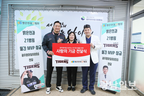 이날 전달된 기금은 2025시즌 동안 김도현, 양현종, 김태군, 최지민, 나성범, 이준영 등이 수상한 밝은안과21병원 월간MVP 상금 중 일부를 적립한 것이다.
