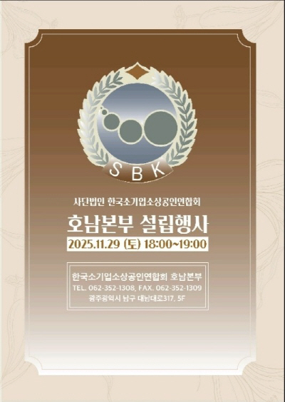 행사는 무등난타 공연을 시작으로 국민의례, 환영사, 축사, 기념촬영 순으로 진행되며, 박인복 한국소기업소상공인연합회장, 최종윤 호남본부 추진위원장 등을 비롯해 소기업·소상공인이 참여할 예정이다.