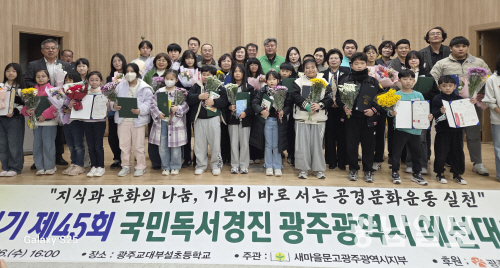 새마을문고광주시지부(회장 김동노)는 26일 광주교육대학교부설초등학교에서 ‘대통령기 제45회 국민독서경진 광주예선대회’ 시상식을 개최했다.