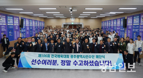 27일 광주시체육회에 따르면 최근 시국민생활관 세미나실에서 전갑수 시체육회장, 체전 참가선수단, 종목별 회장·전무이사, 감독·코치 등 관계자 200여 명이 참가한 가운데 ‘제106회 전국체육대회 광주선수단 해단식’을 개최했다.