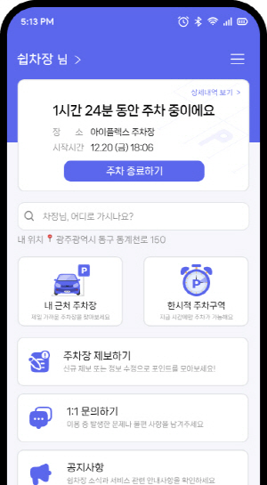 ‘쉽차장’은 이름 그대로 운전자가 차단기 인식 문제, 기계식 주차 어려움, 키오스크 결제 등 불편을 휴대전화 하나로 해결할 수 있는 점이 특징이다. 일반 주차장은 1~2분을 넘어가면 무조건 10~30분 단위로 요금이 부과되지만, 쉽차장은 1분 단위 요금 계산이 가능해 합리적인 비용으로 이용할 수 있다. 시간권과 정기권 등 주차 과정을 앱과 관리자 시스템으로 자동화해 주차장의 디지털화를 실현했다.