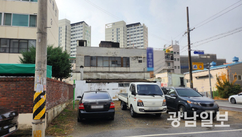 | 광주시 북구 중흥동 광신맨션 옆 한강의 북카페 부지는 북카페 공간으로 급부상했으나 현재는 그 어떤 표식도 없이 주차장으로 쓰이고 있다. 사진은 한강의 북카페 부지로 거론됐던 중흥동 광신맨션 옆 공터. |