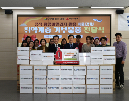 이번 행사는 임직원 공무출장 등으로 적립된 공적 항공마일리지를 모아 항공사 마일리지몰을 통해 생필품을 구매해 진행됐으며, 총 125만원 상당의 생필품 50박스를 무안군 저소득 세대에 전달했다. 기부물품은 전남사회복지공동모금회를 통해 관내 취약계층 가정에 순차적으로 배분될 예정이다.