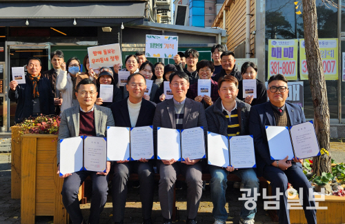 28일 광산구에 따르면 신창동 미래발전계획수립단은 신창상인회와 ‘1평의 기적’ 시범 사업으로 조성한 ‘신창정원’의 체계적 관리를 위한 협약을 체결했다.