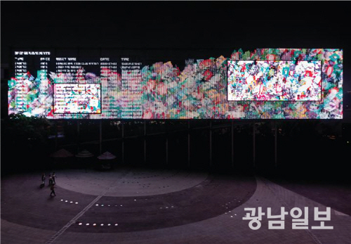 전시 작품은 언해피서킷의 ‘9개의 지구 언어로 쓰인 인터스텔라 메시지’를 비롯해 김대천의 ‘공생도시’, 프롬(이수진)의 ‘그 너머의 공간으로의 초대’, AABB의 ‘바벨×바벨 Ⅱ’ 등 전당 미디어아트 작품 35점이다.