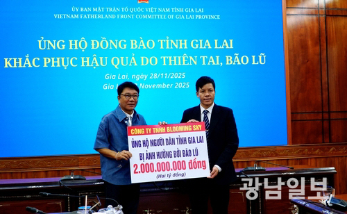 | 잘라이성에 성금 전달하는 이수만왼쪽부터 이수만 A2O엔터테인먼트 키 프로듀서, 당 반 하이 잘라이성 인민위원회 부위원장 [A2O엔터테인먼트·잘라이성 제공. 재판매 및 DB 금지] 연합뉴스 |
