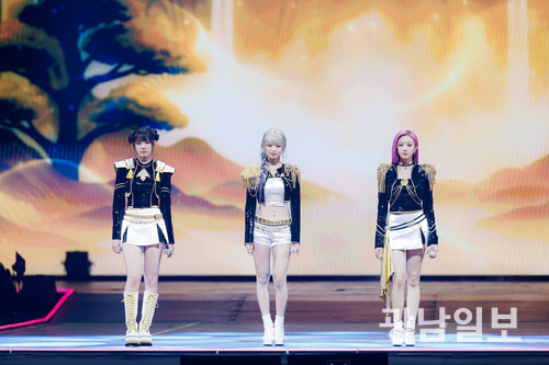 걸그룹 베이비몬스터의 파리타·아현·로라가 3인조 K팝 그룹 헌트릭스로 분해 ‘왓 잇 사운즈 라이크’와 ‘골든’을 불렀다.