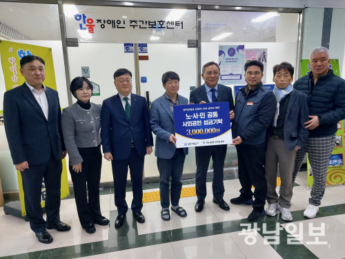 이번 행사에서는 양 기관 임직원들의 따뜻한 마음이 담긴 300만 원의 성금을 광산구 한울장애인주간보호센터에 전달하며 주변 이웃들의 포근한 겨울 나기를 기원했다.