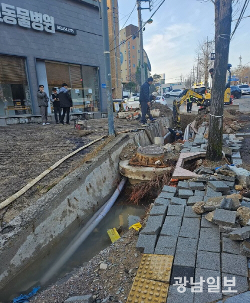 2일 광주 남구 등에 따르면 전날 오전 5시 14분 주월동 도시철도 2호선 공사 구간 인근에서 직경 400㎜ 상수도관이 파열됐다.