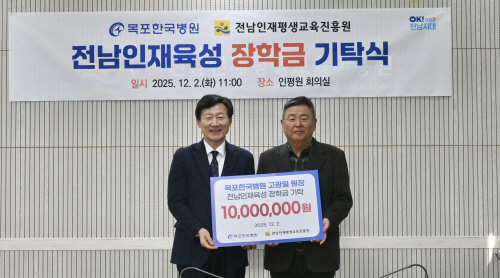범희승 원장은 “연말을 맞아 소중한 장학금을 기탁한 고광일 병원장께 감사드린다”며 “장학금은 전남의 인재가 꿈을 마음껏 펼치면서 성장하도록 뒷받침하는데 소중히 쓰겠다”고 말했다.