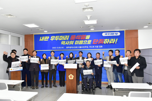 시의원들은 이날 의회에서 기자회견을 갖고 “지난해 12월 3일 내란 우두머리 윤석열이 기습적으로 비상계엄령을 선포했다”며 “윤석열이 일으킨 내란은 입헌주의에 총구를 겨눈 국헌문란이었다”고 강조했다.