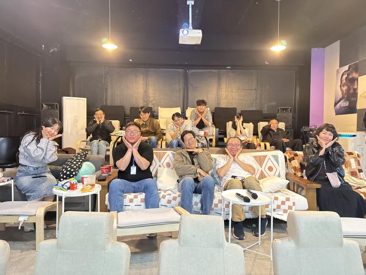 | 엠엠큐레이션 시사회에 참석한 변민영(앞줄 왼쪽 첫번째)·윤창민(뒷줄 오른쪽 세번째) 감독과 관계자, 시민 관객들. |
