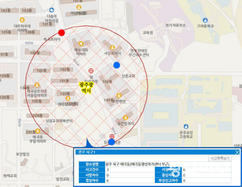 북구의 경우 매곡동 행정복지센터 부근(사고 3건·부상 6명), 운암동 운암사거리·임동오거리·신안동 역전지구대 부근(사고 3건·부상 4명), 용봉동 좋은약국 부근 △우산동 말바우사거리(사고 3건·부상 3명) 등이 위험 지역으로 분류됐다.