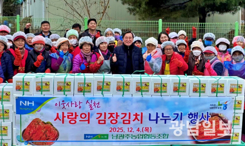 이영종 남광주농협 조합장은 “매년 추운 날씨에도 어려운 이웃을 위해 정성을 다해 참여해 주시는 여성단체 회원들께 깊이 감사드린다”며 “사랑과 온정이 가득 담긴 김치가 어려운 이웃들의 겨울을 따뜻하게 하는 작은 힘이 되길 바란다”고 말했다.