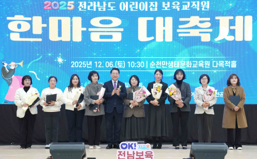 이번 행사는 전남도어린이집연합회가 주관해 올 한 해 도내 보육 현장을 지켜온 1만여 보육교직원의 노고를 격려하는 자리로 마련됐다. 전남도는 보육발전에 기여한 원장과 보육교사 등 59명에게 도지사 표창을 수여하며 현장에서 묵묵히 헌신해 온 교직원들의 노력을 공식적으로 인정했다.