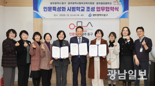 동구는 최근 광주 동부교육지원청, 광주 충장중학교와 ‘인문 특성화 시범학교 운영을 위한 업무협약’을 체결하고 지역 인문교육 활성화를 위한 협력 기반을 구축했다고 8일 밝혔다.
