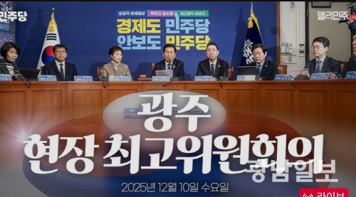 정청래 지도부는 이날 광주 김대중컨벤션센터에서 현장 최고위원회와 호남발전특별위원회 성과 보고회를 잇달아 열었다. 이날 회의는 내년도 예산안이 지난 2일 국회 본회의를 통과한 후 처음 열린 현장 최고위다