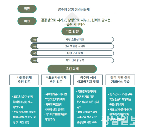 또 도시철도-시내버스 간 연계 네트워크 구축, 도시철도 개통 후 적정 버스 대수 산정, 마을버스·광역버스 등 기능체계 재정립, 광주형 요금 조정 정례제 도입, 버스전용차선 운영 개선 등 발전 방안도 제시됐다.