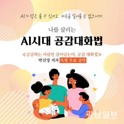 12일 공감커뮤니케이션연구소(대표 박진영)에 따르면 15일 오후 3시부터 4시 30분까지 광주시 서구 쌍촌동 호남대 공자학원에서 ‘AI 시대 공감대화법’을 주제로 한 특별 무료 강연을 진행한다.