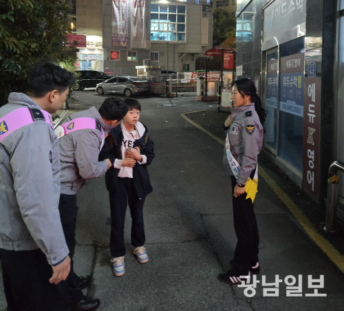 광주남부경찰은 14일 청소년 강력범죄 예방과 주민 불안 해소를 위한 종합대책으로 청소년 밀집지역을 중심으로 비행 예방 야간순찰활동을 실시했다고 밝혔다.