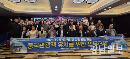 | 여수시는 (사)여수시관광협의회와 함께 최근 중국을 방문해 민·관 합동 관광 홍보활동을 추진하고, 여수의 주요 관광자원과 2026여수세계섬박람회를 알리며 중국 단체관광객 유치에 나섰다. |