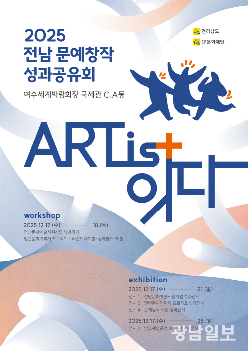 김은영 대표이사는 “‘ART is + 잇다’는 전남의 예술가들이 한 해 동안 쌓아온 창작의 시간과 노력을 서로 연결하고, 도민과 함께 나누는 자리”라며 “이번 성과공유회를 통해 전남 예술의 현재를 돌아보고, 앞으로의 확장 가능성을 함께 상상하는 시간이 되기를 바란다”고 밝혔다.