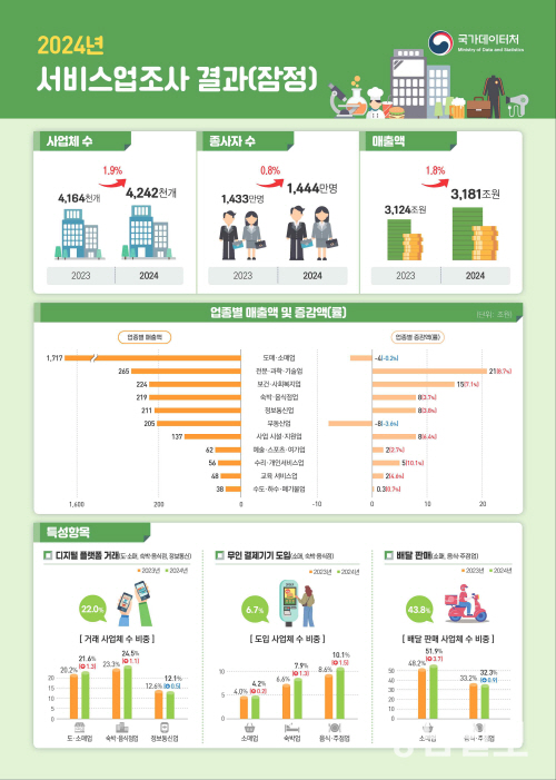 국가데이터처는 18일 이런 내용을 담은 ‘2024년 서비스업 조사 결과’를 발표했다.