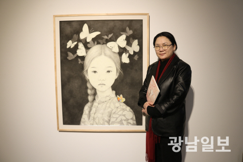 “꽃 같은 것은 솔직히 흔하잖아요. 꽃을 그린 사람들은 많으니까 자아에 대한 느낌 또는 나 자신을 표현하고 싶은 욕망 때문에 항상 인물이 주였죠. 한국화를 전공하기 위해 대학원 박사 학위과정 전에 준비 과정으로 평생교육원에 먼저 입학해 민화와 불화, 수묵화, 서예 등을 배웠습니다. 그러던 무렵 주변의 선생님들이 조선대 대학원을 많이 추천해 주신 거죠.”