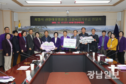 | 최명석 신안대우병원장은 최근 ‘김우중 의료인상’ 수상으로 받은 상금 가운데 1500만원을 고향사랑기부금으로 신안군에 기탁했다. |