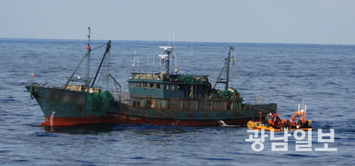 | 목포해경이 무허가 중국어선을 나포하고 있다. |