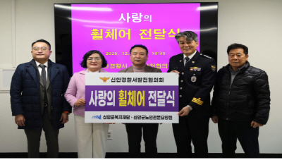 | 신안경찰서와 경찰발전협의회는 최근 압해읍 신안군노인전문요양원에 휠체어 7대를 기증했다. |