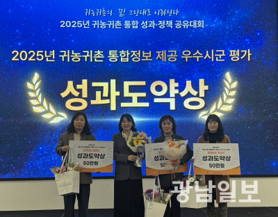 군은 귀농어귀촌 체류형지원센터를 중심으로 맞춤형 교육과 상담을 제공하고, 귀농인의 집 운영, 선도 농가 연계 체험·교육, 단계별 교육 프로그램 등 귀농귀촌 준비 단계부터 조기 영농 정착까지 이어지는 체계적인 지원 체계를 구축한 점에서 높은 평가를 받았다.