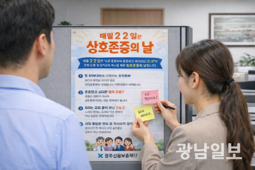 | 광주신용보증재단은 직장 내 존중과 배려 문화를 확산하기 위해 ‘상호존중의 날’을 제정하고, 매월 22일 정기적으로 시행한다. |